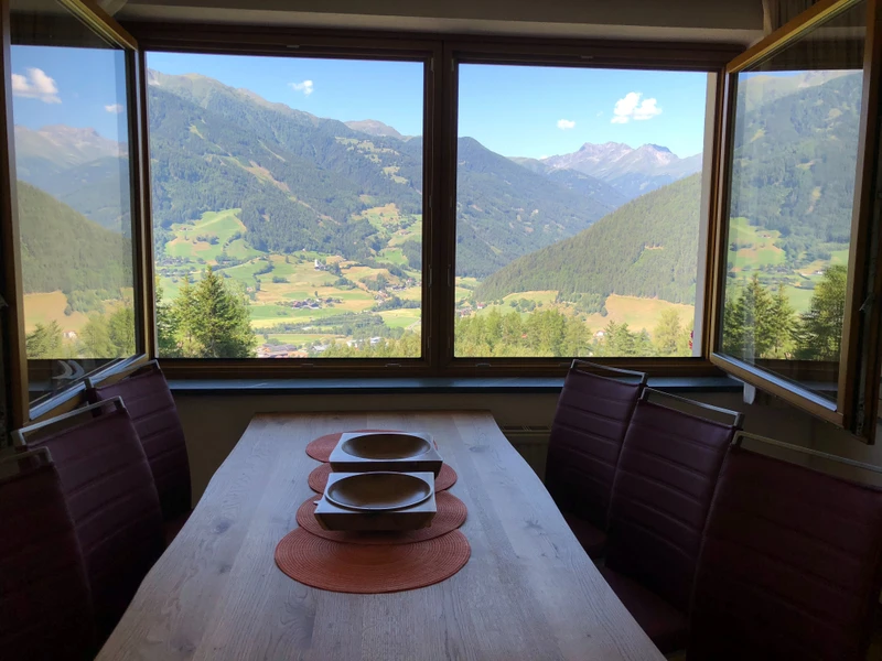 "Eigener Herd ist Goldes Wert" - Wer sich gerne selbst versorgen möchte, findet bei uns eine voll ausgestattete Küche, die kaum einen Wunsch offen lässt. Genießen Sie die Zeit mit Ihren Liebsten bei einem Espresso oder Gläschen Wein und lassen Sie dabei Ihren Blick über das gegenüberliegende Tal und die grünen Wiesen schweifen.
