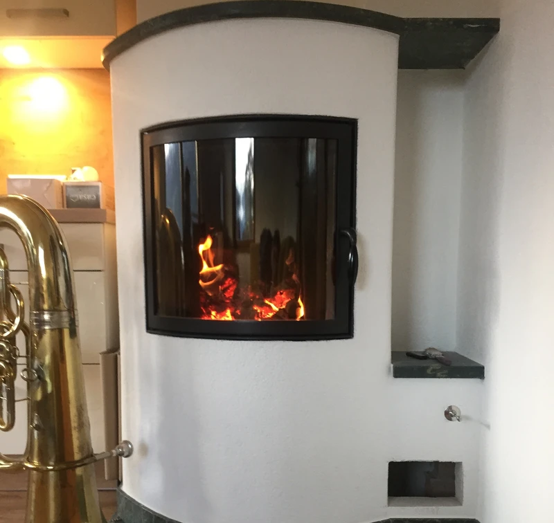 An kühlen Tagen verwandelt der atmosphärische Kachelofen die gemütliche Küche in ein Wohlfühlparadies.